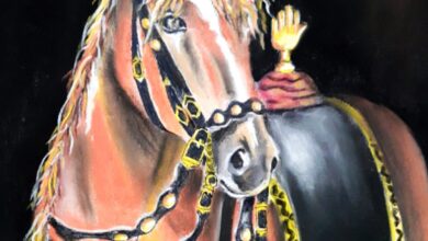 Painting of Horse of Hussain ع (Zuljanah)Medium : Pastels, Size : 12″×18″ Initial Stage.. Painting – Drawing – Islamic Art…